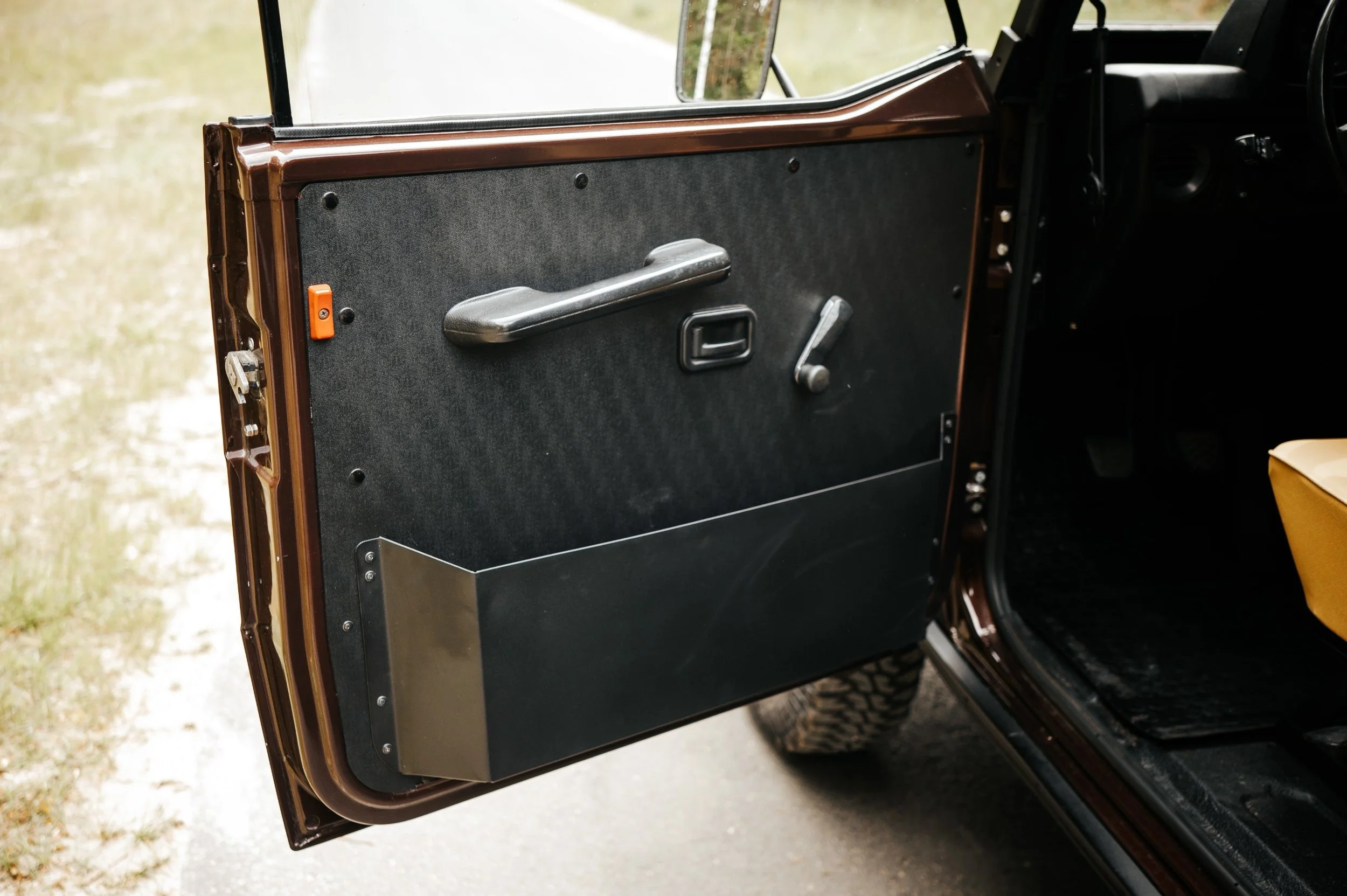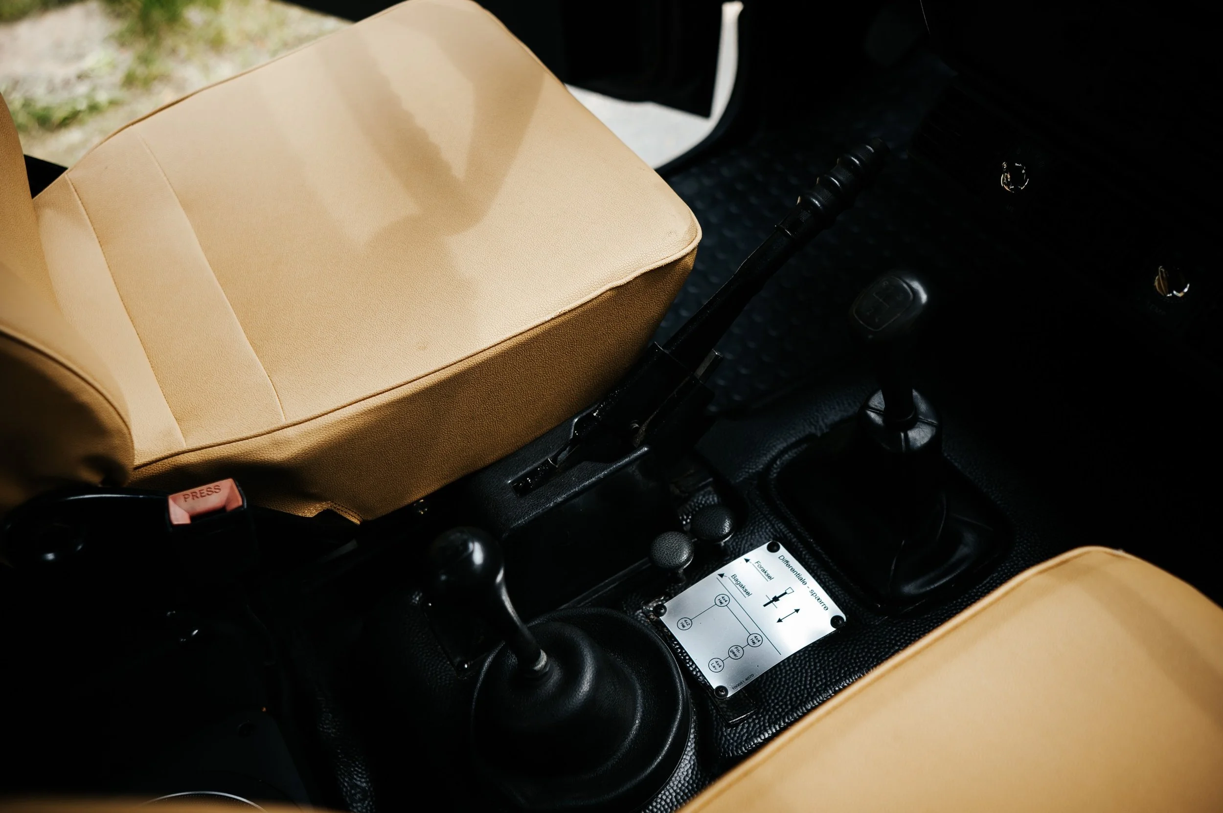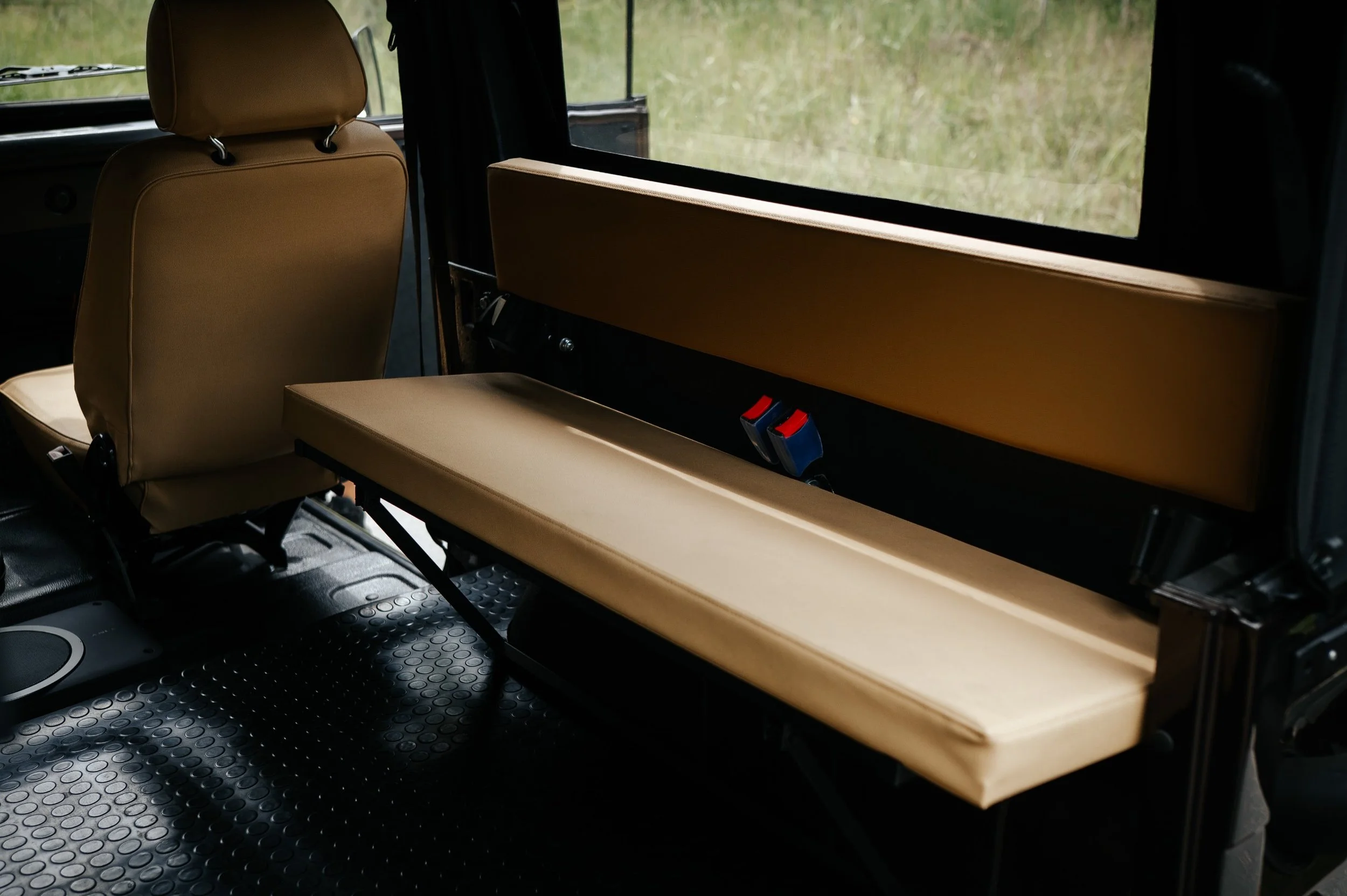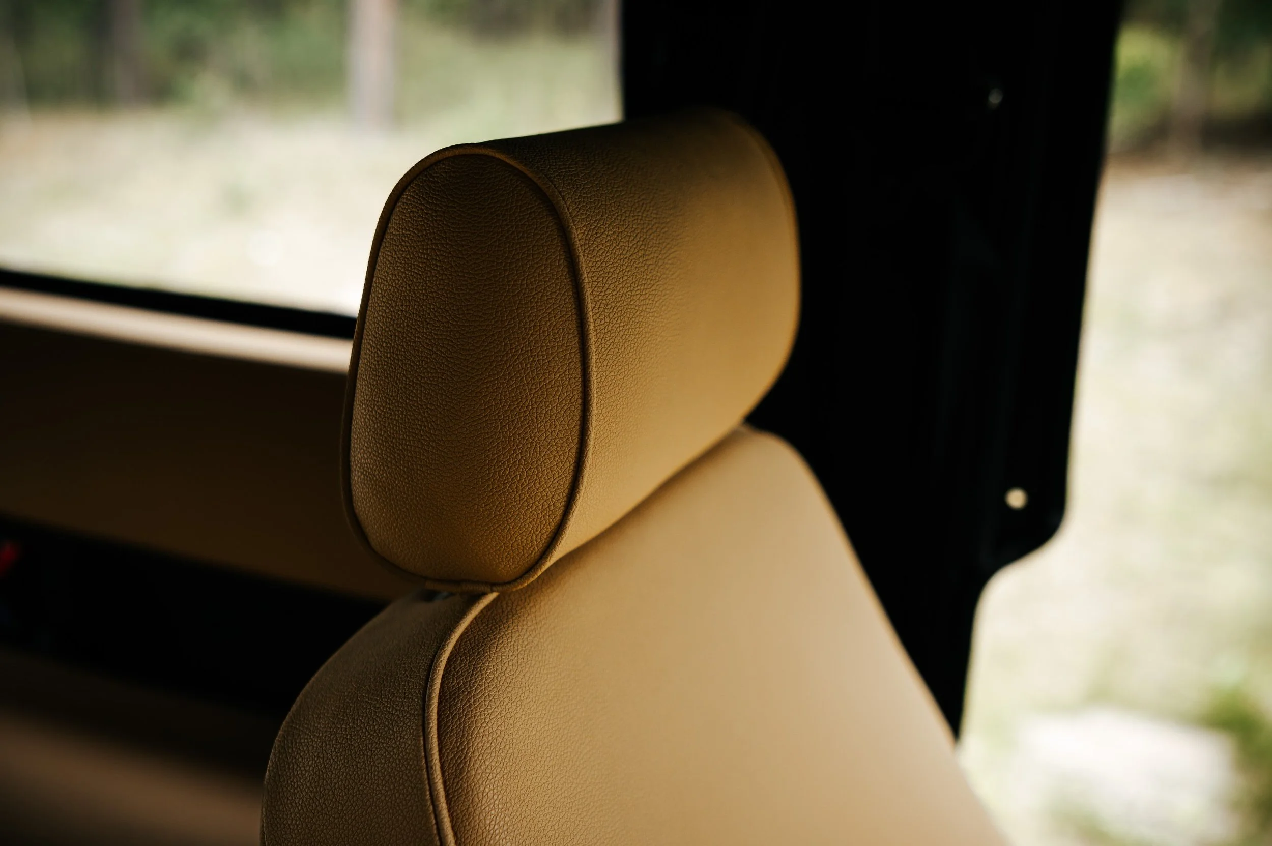 Hand made canvas 2 piece roof. Tan leather interior. 6 seater.